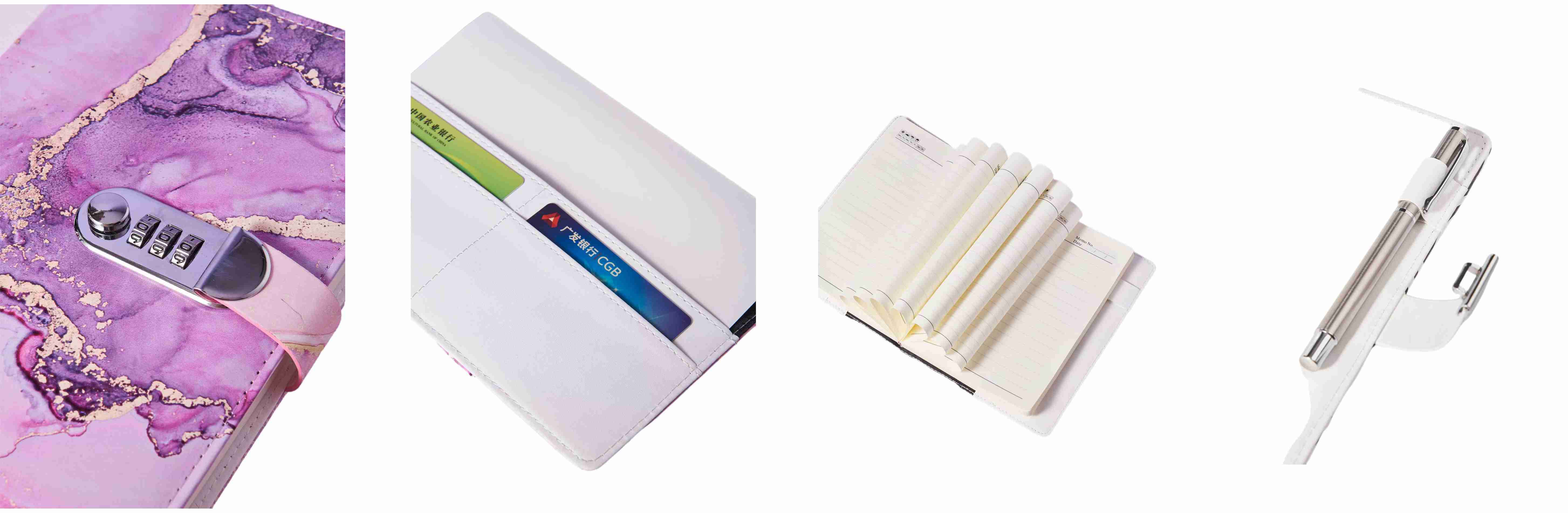 •หน้าภายในที่อุดมไปด้วย: หน้าภายในที่ถูกปกครองให้การเขียนที่ราบรื่นโดยไม่ต้องมีเลือดออกหมึก พวกเขายังรองรับการปรับแต่งหลายภาษารวมถึงสเปน, อังกฤษ, โปรตุเกส, รัสเซีย, อิตาลี, อาหรับ ฯลฯ ด้วยช่องเสียบการ์ดในตัวมันเป็นเรื่องง่ายที่จะจัดเก็บบัตรธนาคารและบัตรสมาชิก-ให้บริการทั้งสมุดบันทึกและผู้ถือบัตรเหมาะสำหรับการใช้งานระหว่างเดินทาง